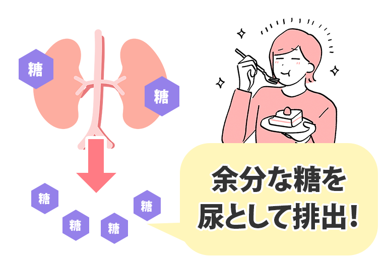 SGLT2阻害薬は、血液中の余分な糖を尿として体外へ排出させるお薬です。もともとは糖尿病の治療薬ですが、「1日あたり約200〜400kcal(ご飯1.5杯分〜)」もの糖を排出する仕組みが、ダイエットに非常に効果的だと注目されています。